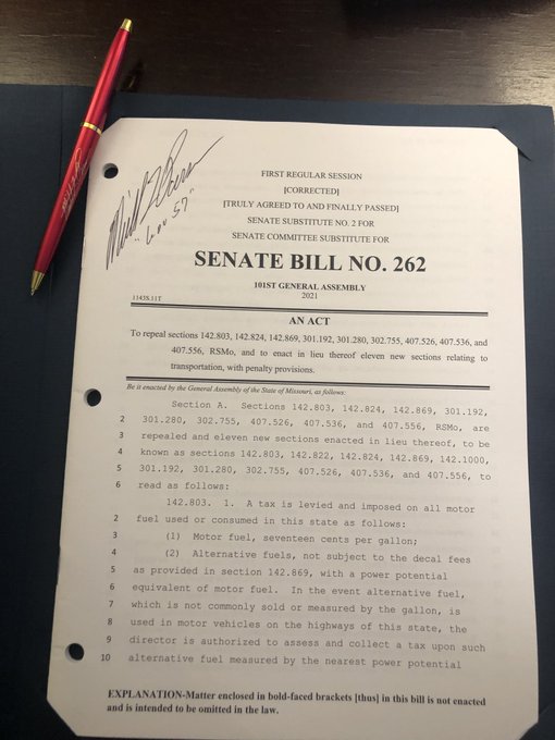 262 101ST GENERAL ASSEMBLY 2021 1143S11T AN ACT To repeal sections 142803 142824 142869 301192 301280 302755 407526 407536 and. 30 2022 on purchases made after Oct. Missouris fuel tax was last raised in 1996 when the states legislature passed a 6-cents-per-gallon hike.